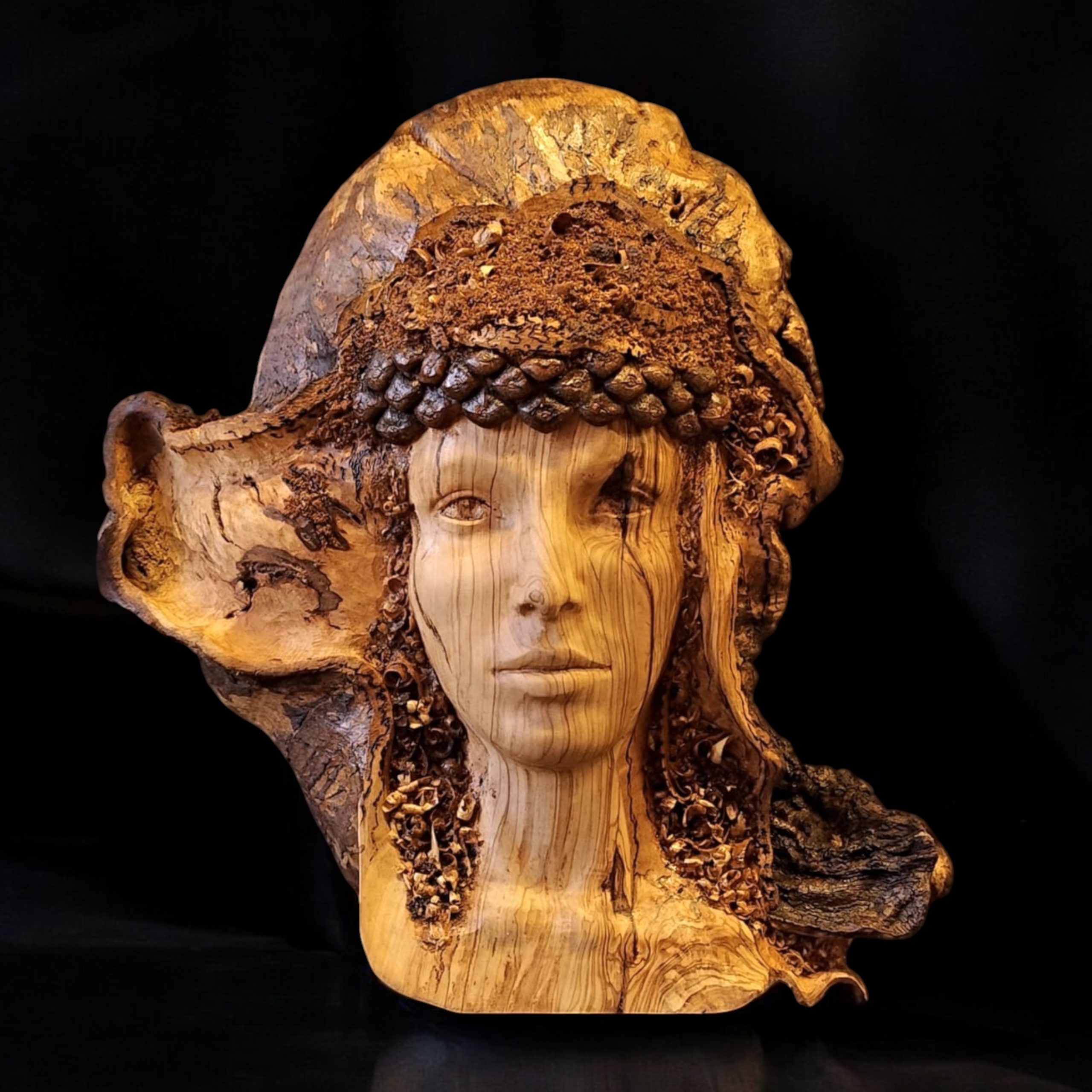 Hypatia Material: Olive and Linden Wood Size: h 38 x 35 x 18 cm Year: 2024
